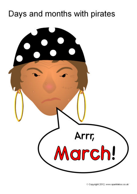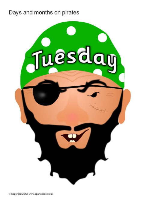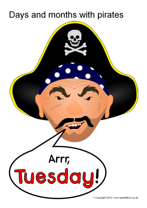 Two different sets with the days of the week and months of the year presented with pirate characters.