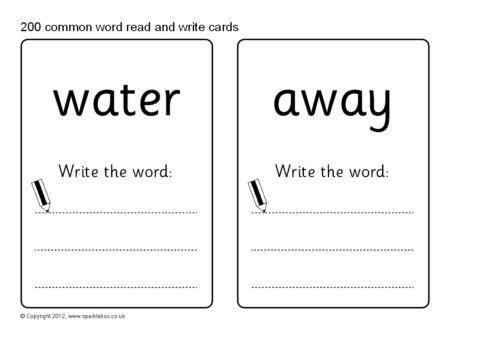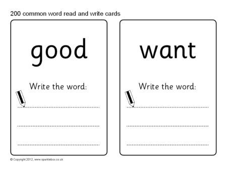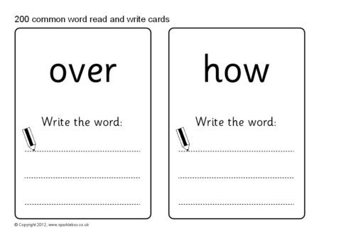 200 common words on flash cards with lines for children to practise writing the words underneath.
