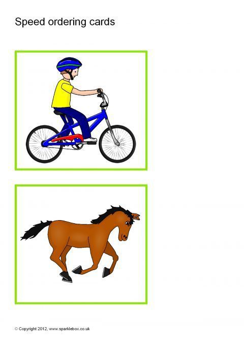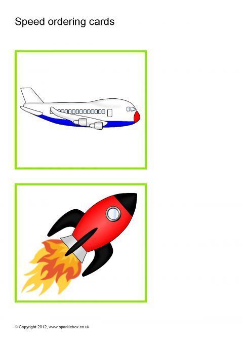 A set of cards with images of things that travel at different speeds. Make a discussion activity where children order the cards into slowest to fastest.