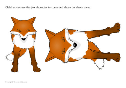 Printable desktop activity mats where children roll a dice and place sheep in the field. They roll again for the fox to chase some away, then write the total or number sentence.