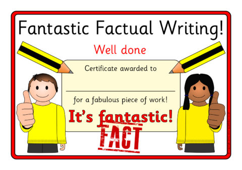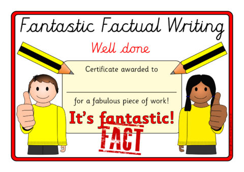Fantastic Factual Writing Award Certificates (SB7391) - SparkleBox