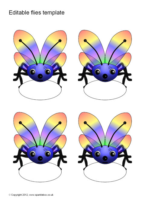 Microsoft Word templates that enable you to add text to cartoon flies.
