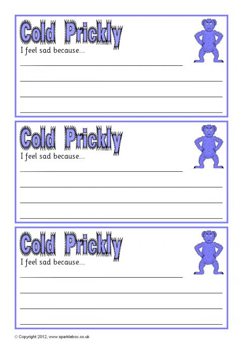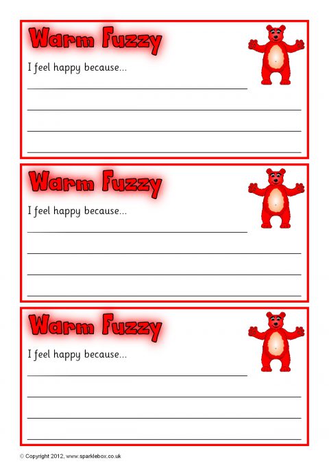 Printable note slips with a ‘Warm Fuzzy’ and ‘Cold Prickly’ character for pupils to write how they are feeling. Great for use on a PSHE display or for a class feelings box.