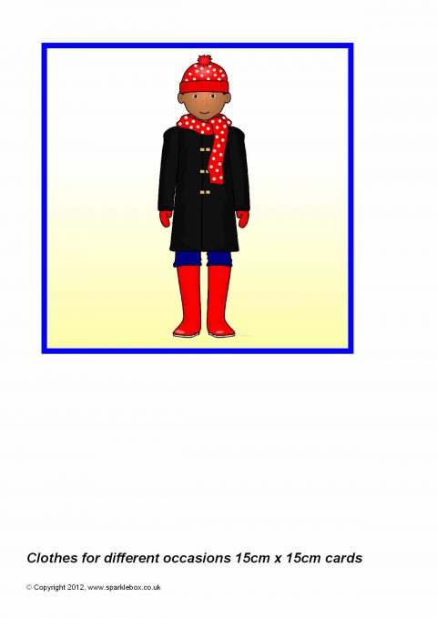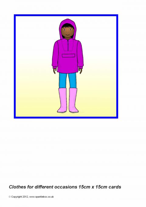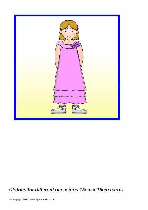 Multi-use printable cards featuring children dressed for different occasions. Each card is 15cm by 15cm and can be used for all sorts of card-based activities.