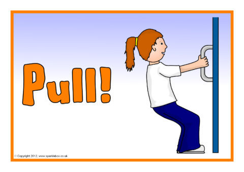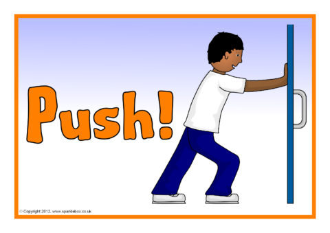 Printable door signs and labels with the words ‘Push’ and ‘Pull’ and simple pictures.