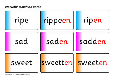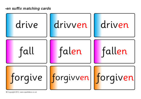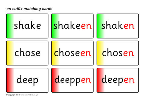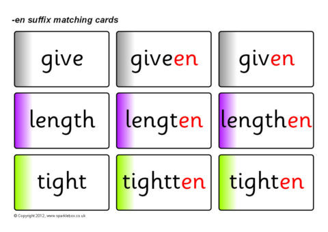 Printable cards where children match the root card to the correct spelling when the suffix -en is added.