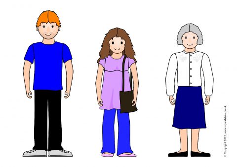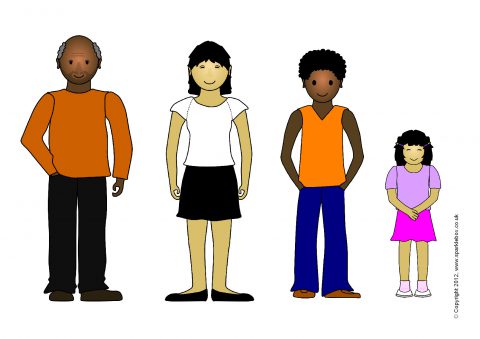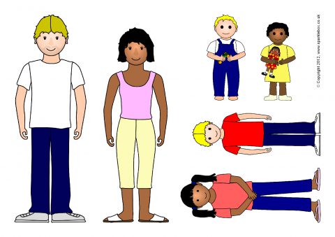 A set of different-sized people that can be cut out and used for size ordering or measuring activities.