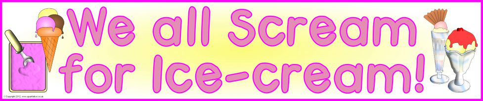 A colourful banner with the title, ‘We all Scream for Ice-Cream!’.