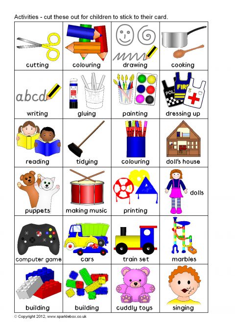 Printable cards to use with children who find communicating difficult. They choose and stick pictures onto their communication cards and take them home to show their parents what they did during the day. Aimed at nursery/preschool level.