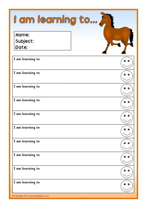 Editable target sheets (for Microsoft Word) with the text ‘I am learning to...’, ‘My next goal is...’ and ‘I can...’. Each sheet has space for 10 targets.