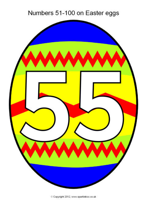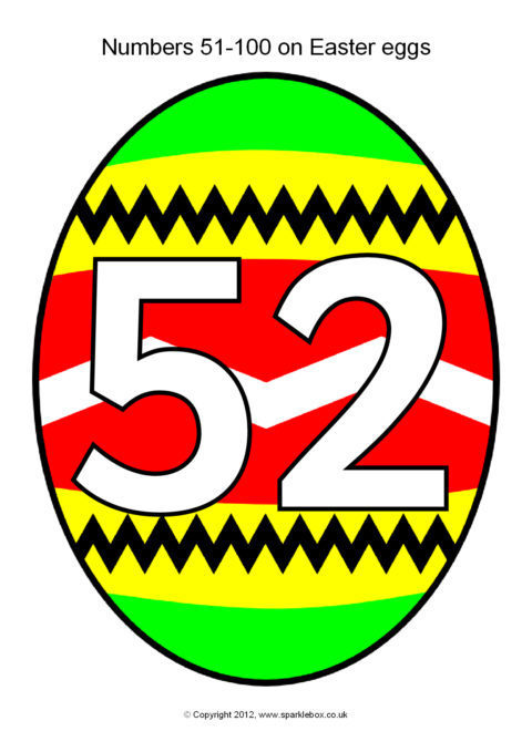 The numbers from 51-100 presented on brightly coloured Easter eggs.