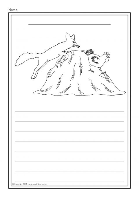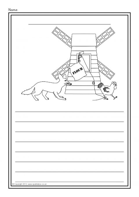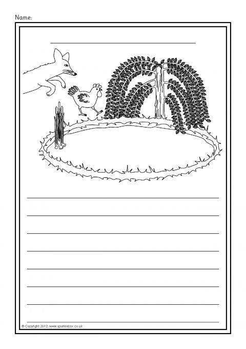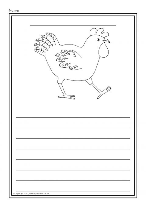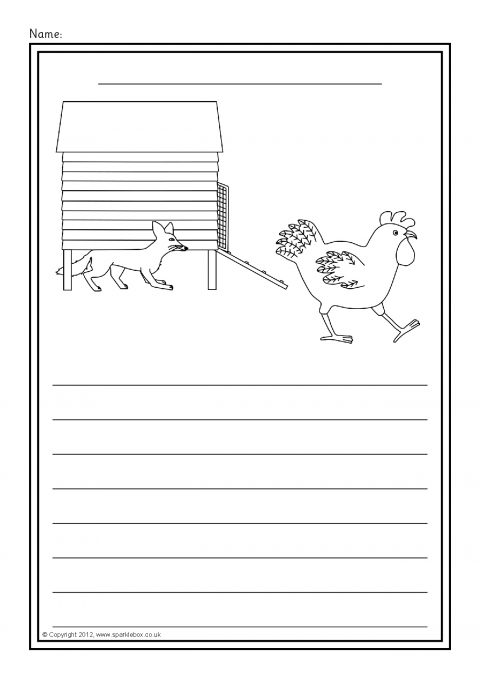 A set of simple printable sheets featuring images from the story of Rosie’s Walk for children to colour along with writing lines for story-related writing.
