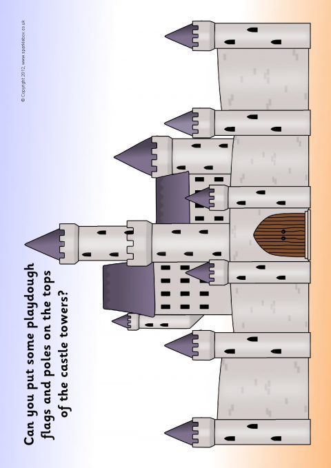 A set of playdough mats where pupils make various things associated with medieval castles.  Children can make a coat of arms for the shield, flags for the castle towers, a portcullis and more.