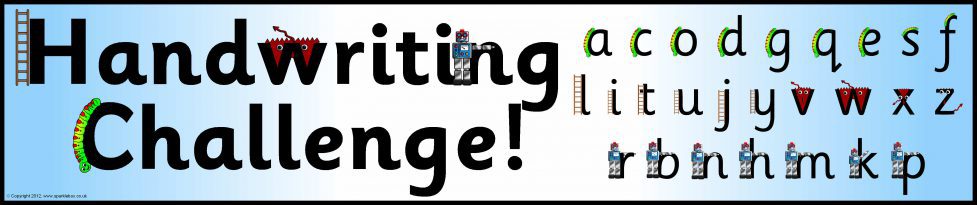Colour banners for your ‘Handwriting Challenge’ classroom display. Includes caterpillar, ladder, robot and zigzag monster letters.
