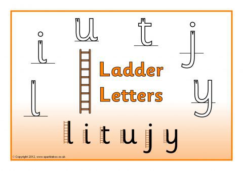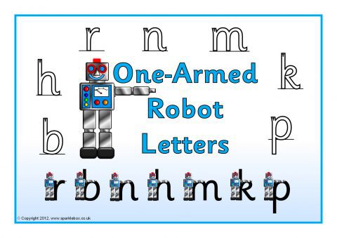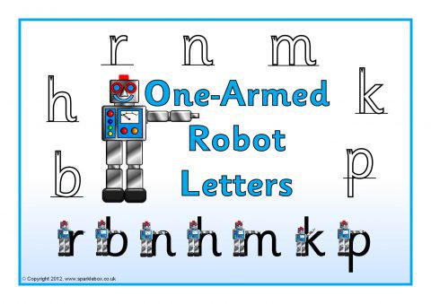 Simple visual aids featuring ‘Caterpillar Letters’, ‘Ladder Letters’, ‘One-Armed Robot Letters’ and ‘Zigzag Monster Letters’.