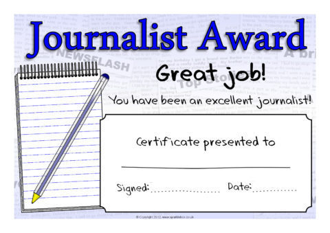 Journalist/Journalism Award Certificates (SB7867) - SparkleBox