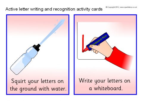 A set of activity cards with various fun ways for children to practice writing and recognising letters of the alphabet.
