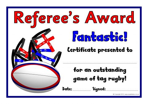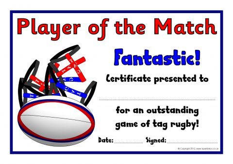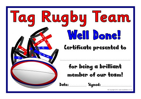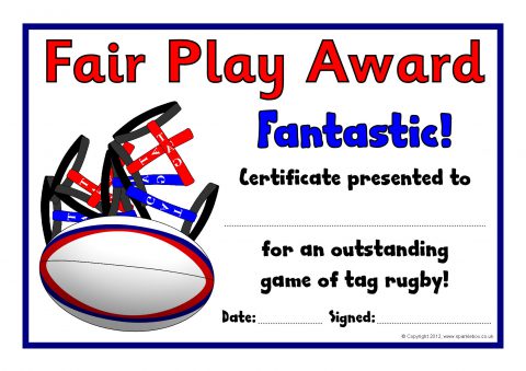 Printable certificates to celebrate children who have participated in your Tag Rugby Club or played well during games.