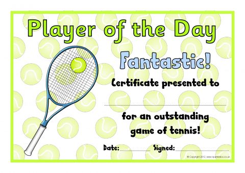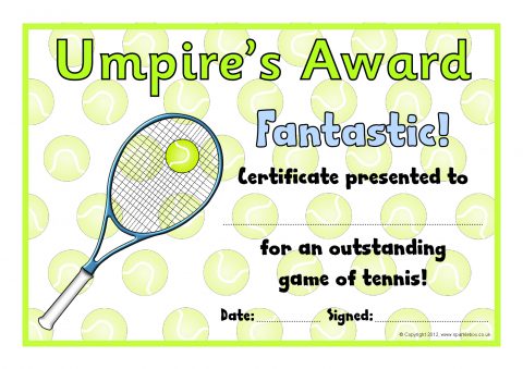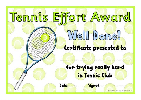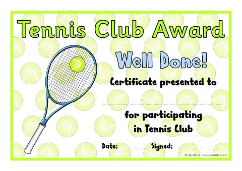 Tennis Club Award Certificates (SB8032) - SparkleBox