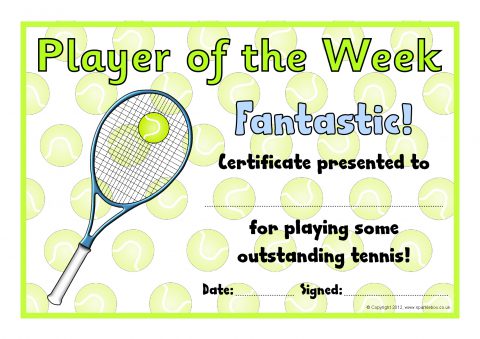 Printable certificates to celebrate children who have participated in Tennis Club or played well during a match.