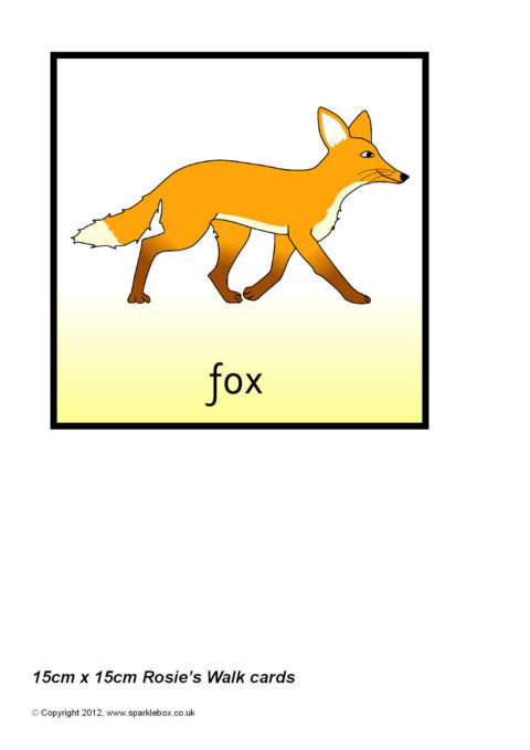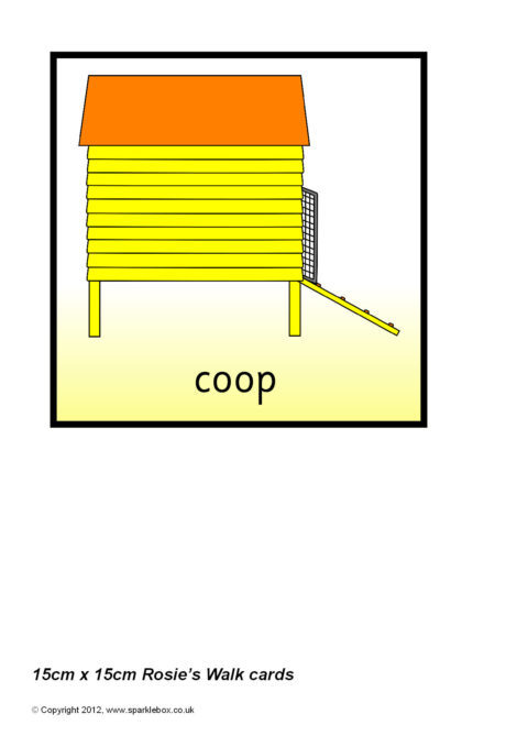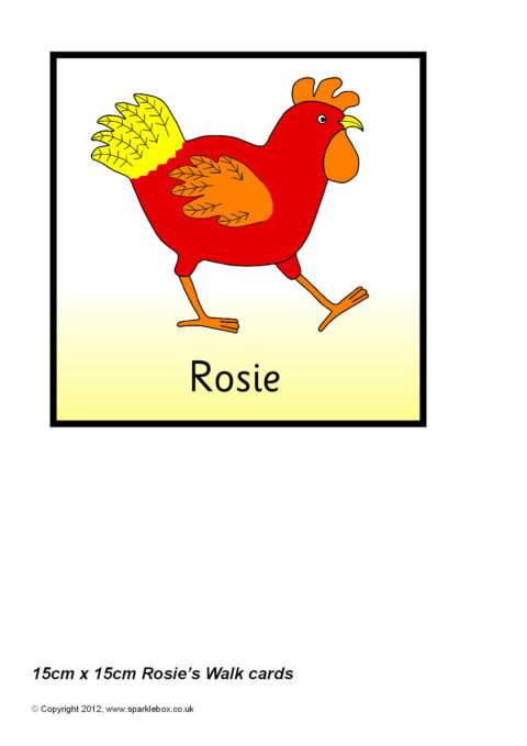 Multi-use printable cards with items featuring items from the story of Rosie’s Walk by Pat Hutchins. Each card is 15cm by 15cm and can be used for all sorts of card-based activities.