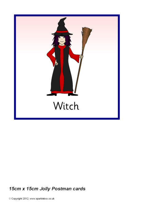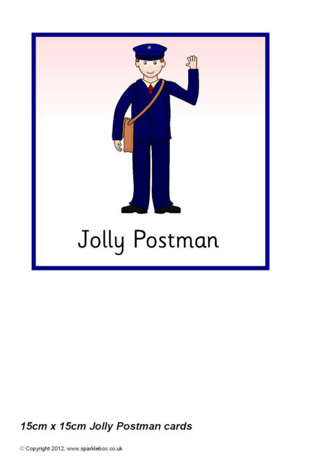 Multi-use printable cards with items featuring characters and houses from the story of The Jolly Postman by Janet and Allan Ahlberg. Each card is 15cm by 15cm and can be used for all sorts of card-based activities.