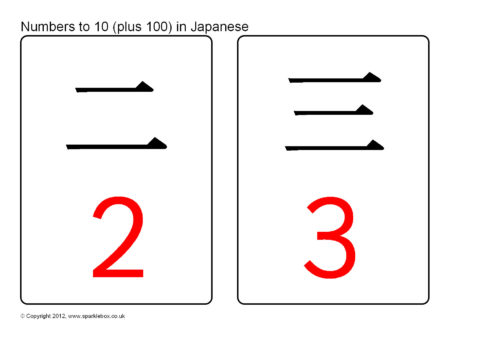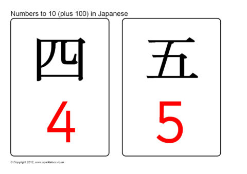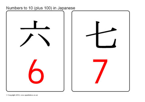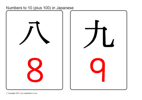 A set of flash cards featuring the numbers from 0 to 10 in Japanese. Includes 100 to enable teaching of all numbers up to 100.