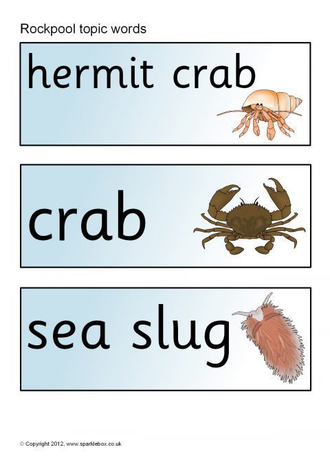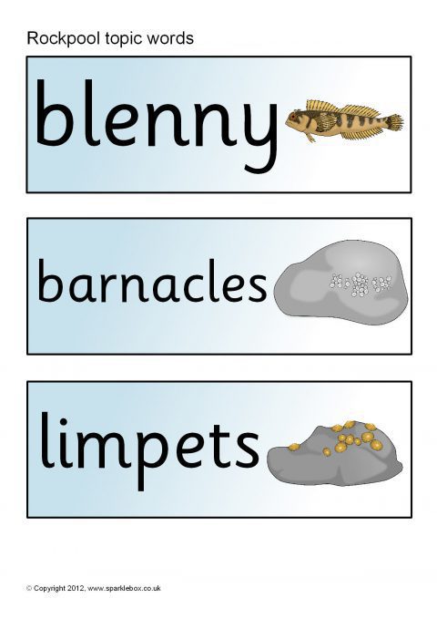 Rockpools Topic Word Cards