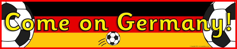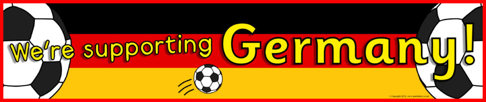 Printable banners with the text ‘Come on Germany!’ and ‘We’re supporting Germany!’ for international football tournaments.