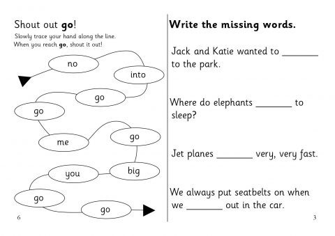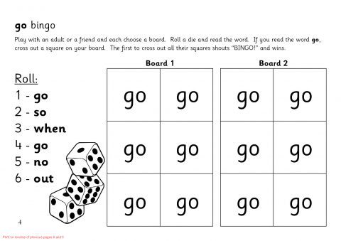 A set of sheets that can be assembled into an A5 folded booklet to give to pupils with activities to help recognition of the word ‘go’.