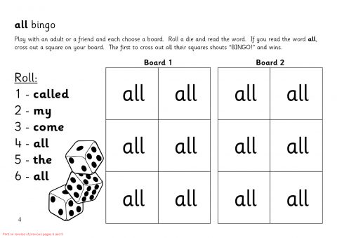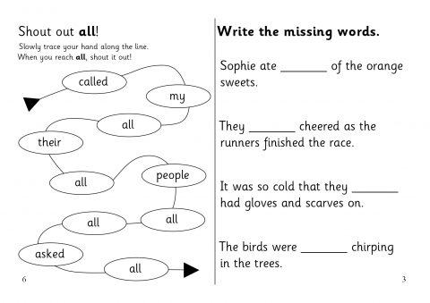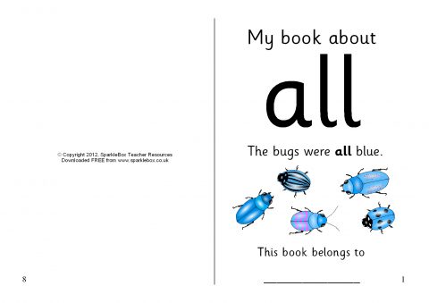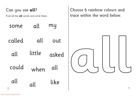 A set of sheets that can be assembled into an A5 folded booklet to give to pupils with activities to help recognition of the word ‘all’.