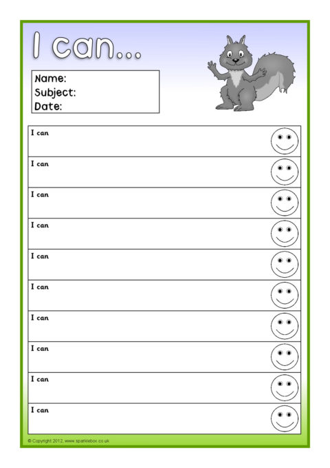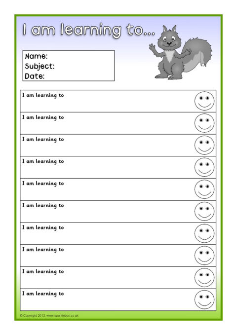 Editable target sheets (for Microsoft Word) with the text ‘I am learning to...’, ‘My next goal is...’ and ‘I can...’. Each sheet has space for 10 targets.