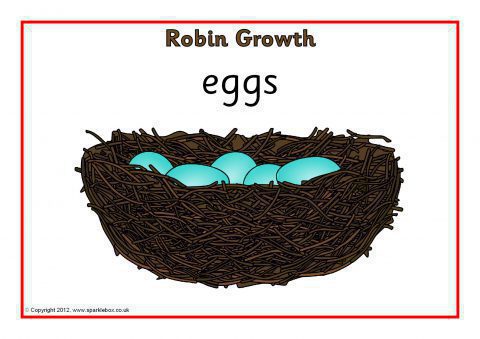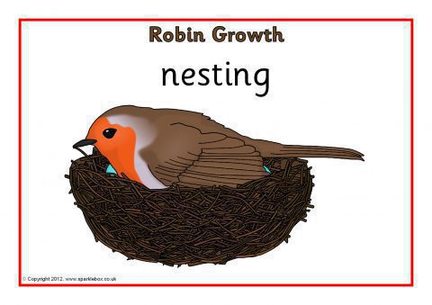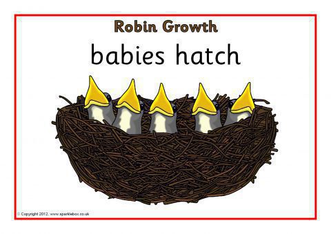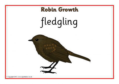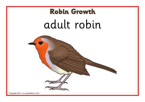 Simple A4-sized printable posters showing different stages in the growth of a robin.