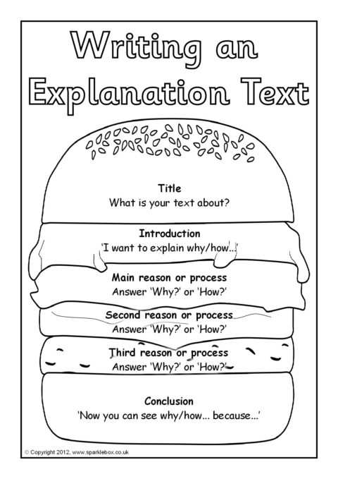 Visual aids in the form of a hamburger showing the main elements of an explanation text.