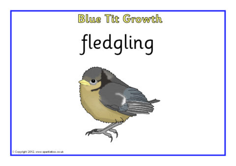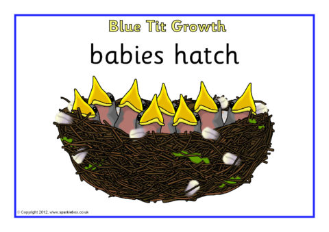 Simple A4-sized printable posters showing different stages in the growth of a blue tit.