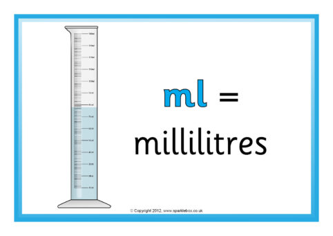 Simple posters to show the abbreviations for metric volume/capacity measurement units.