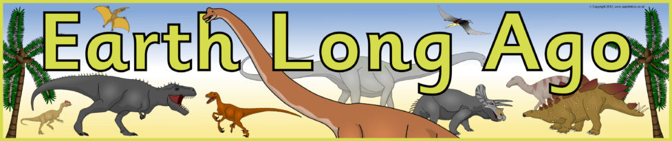 A colourful banner with the title ‘Earth Long Ago’ for your dinosaurs topic display.