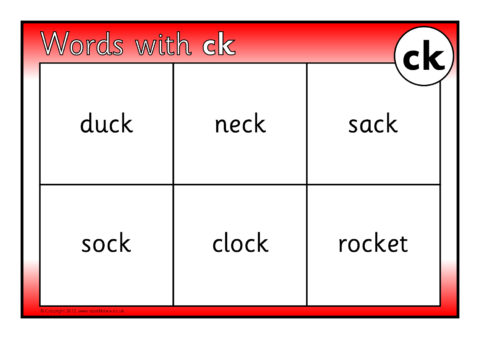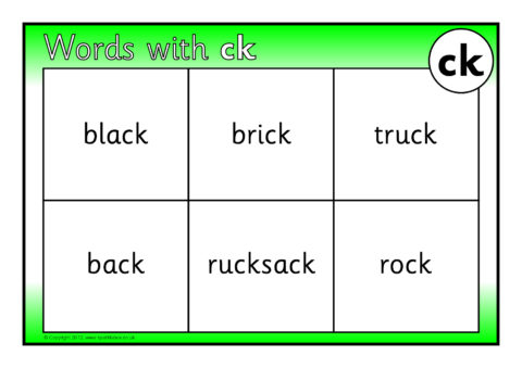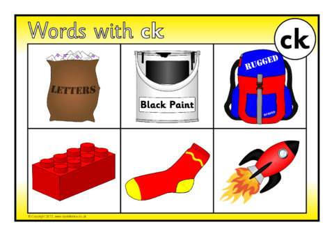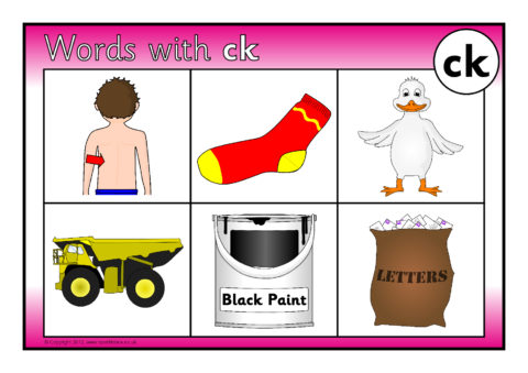 Printable bingo boards and picture cards where children match the pictures to the words with ‘ck’.