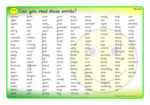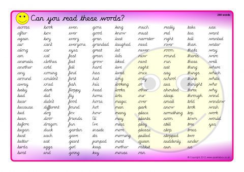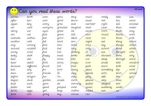 A set of simple A4 word mats featuring the 200 common words as specified in the DfES ‘Letters and Sounds’ publication in cursive script.
