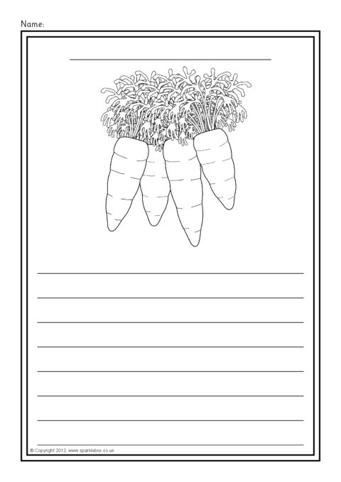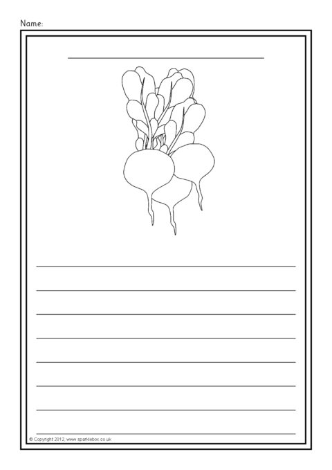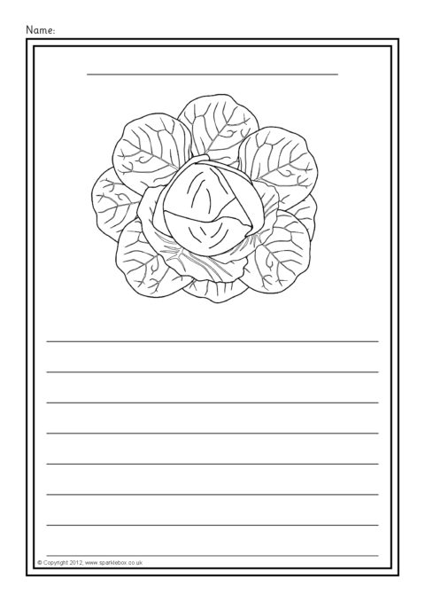 A set of simple printable sheets featuring images of vegetables from the popular story for children to colour along with writing lines for writing.