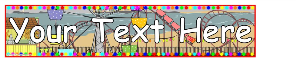 An editable banner with a fairground background. Microsoft Publisher 2007 or higher required to view and edit.