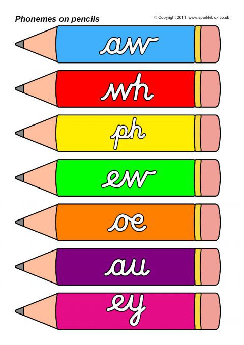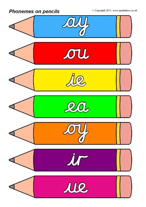 Phase 5 Phonemes on Pencils – Cursive (SB8633) - SparkleBox