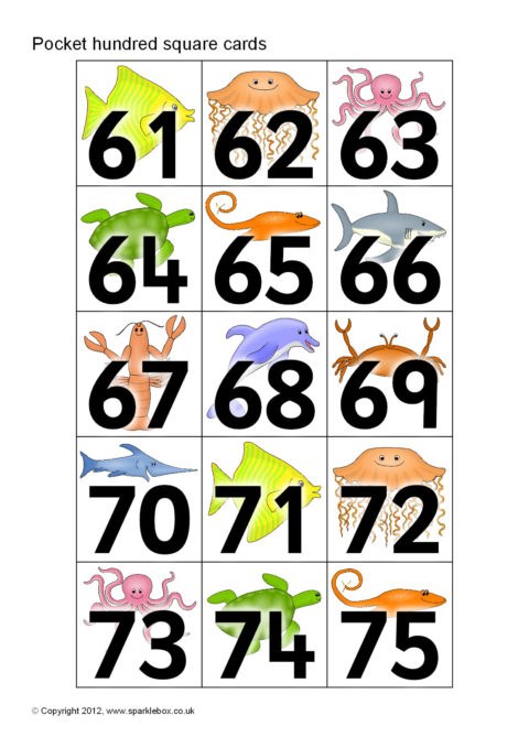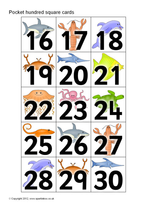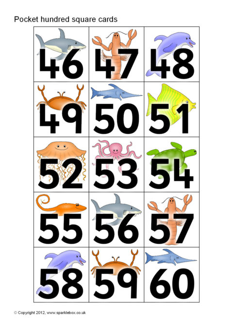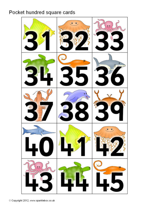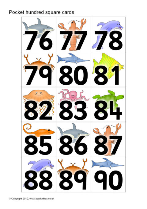 Sea Creature-Themed Pocket Hundred Square Cards (SB8658) - SparkleBox