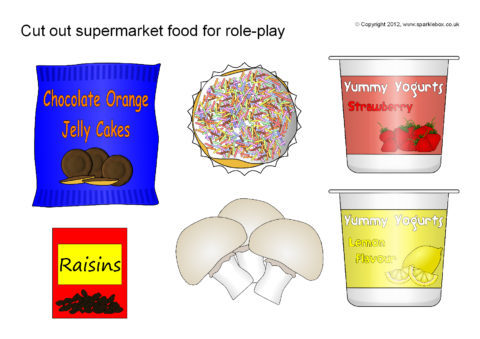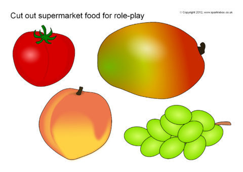 A set of printable supermarket food including common fruit and vegetables. Ideal for use in role-play situations.