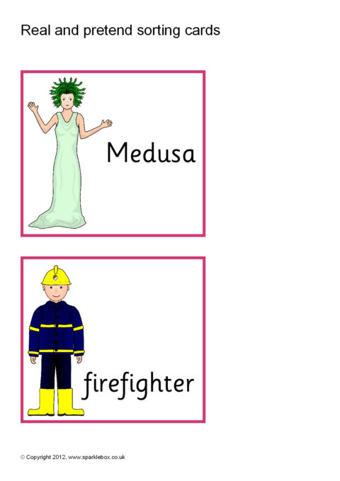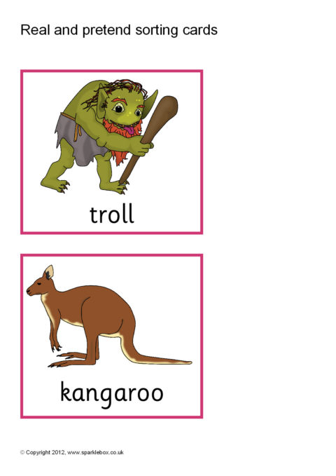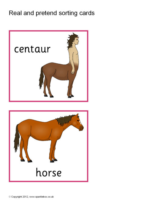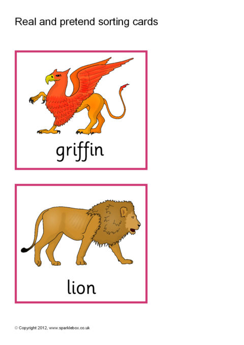 A set of printable sorting cards featuring various fantasy creatures and real animals and people. A great way of promoting discussion about what is real life and what is fantasy.