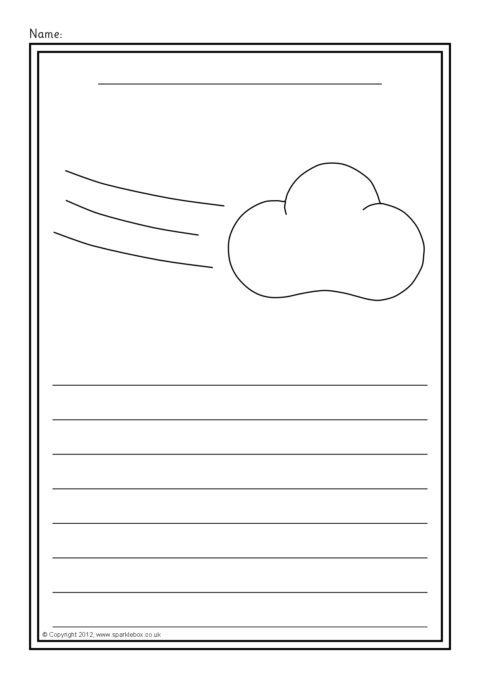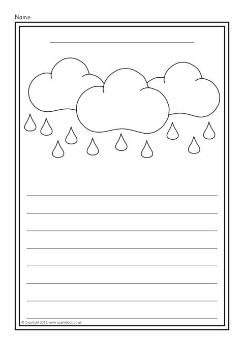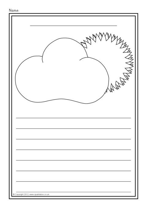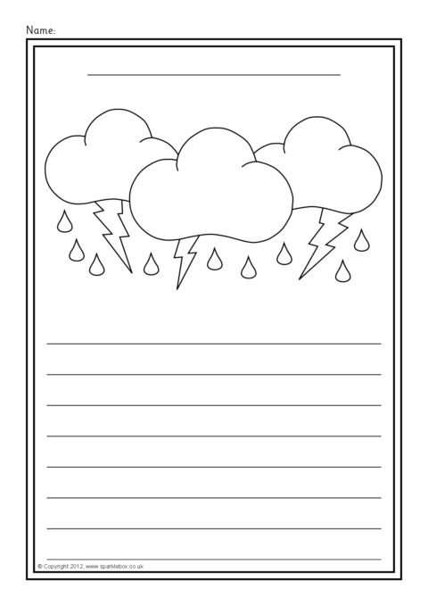 A set of simple printable sheets featuring weather symbols for children to colour along with writing lines for topic-related writing.