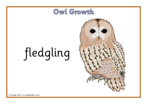 Simple A4-sized printable posters showing different stages in the growth of a tawny owl.