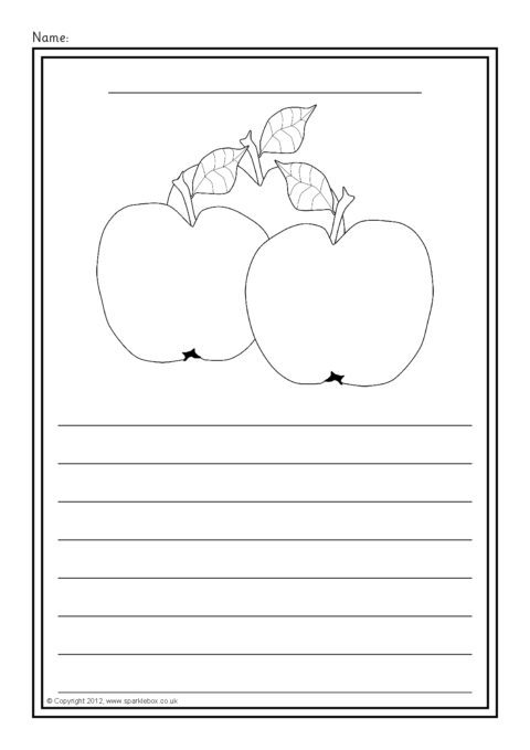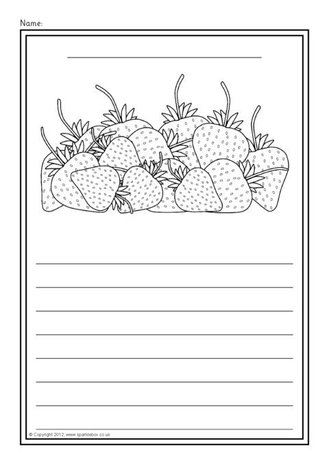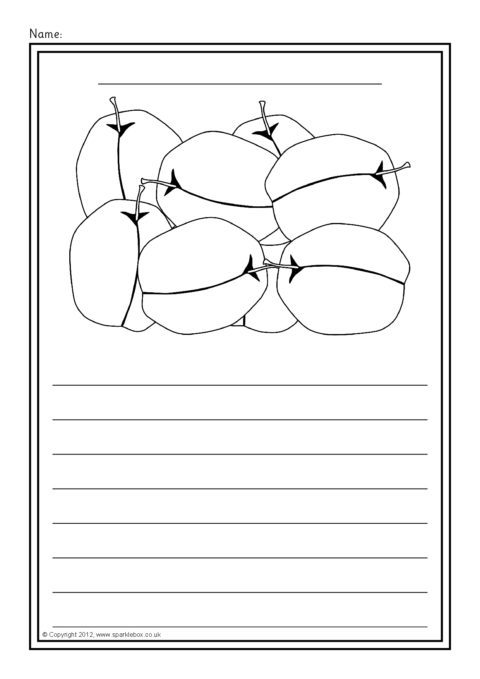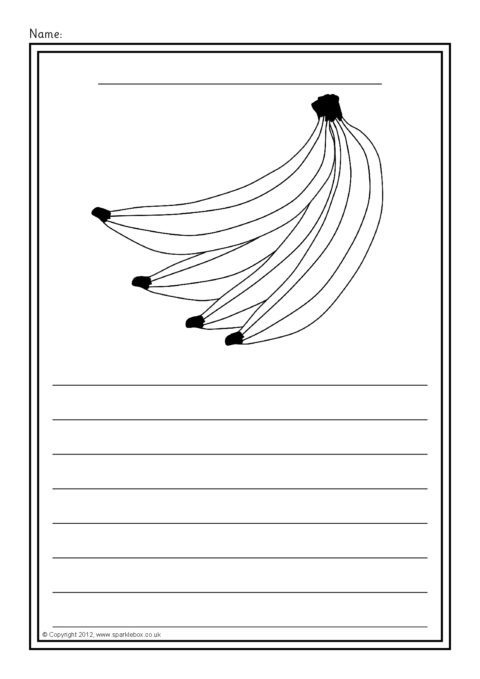 A set of simple printable sheets featuring images of fruit from the popular story for children to colour along with writing lines for writing.