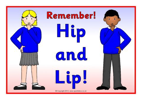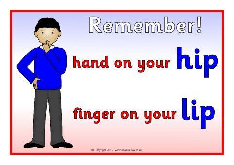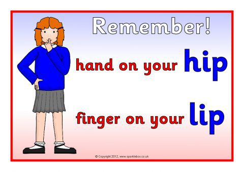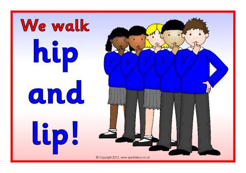 A set of posters to remind children to walk/queue with their hands on hips and fingers on lips.