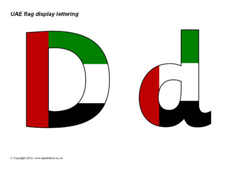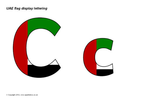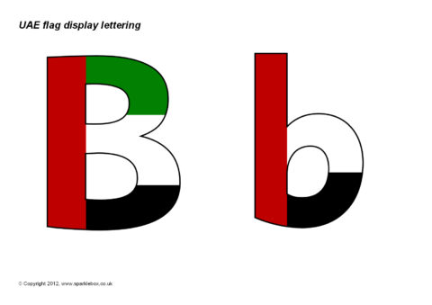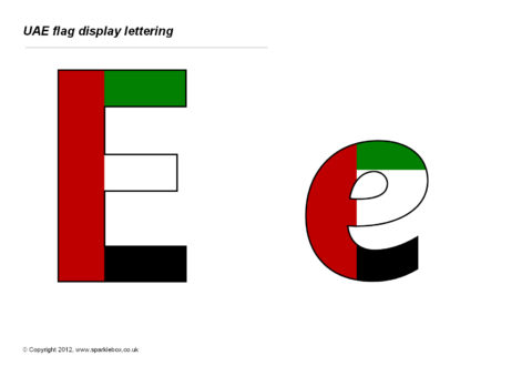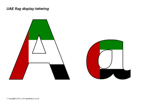 A PDF document with 26 alphabet letters (upper and lowercase) patterned with the United Arab Emirates flag. These are great for printing and cutting out for use on displays.